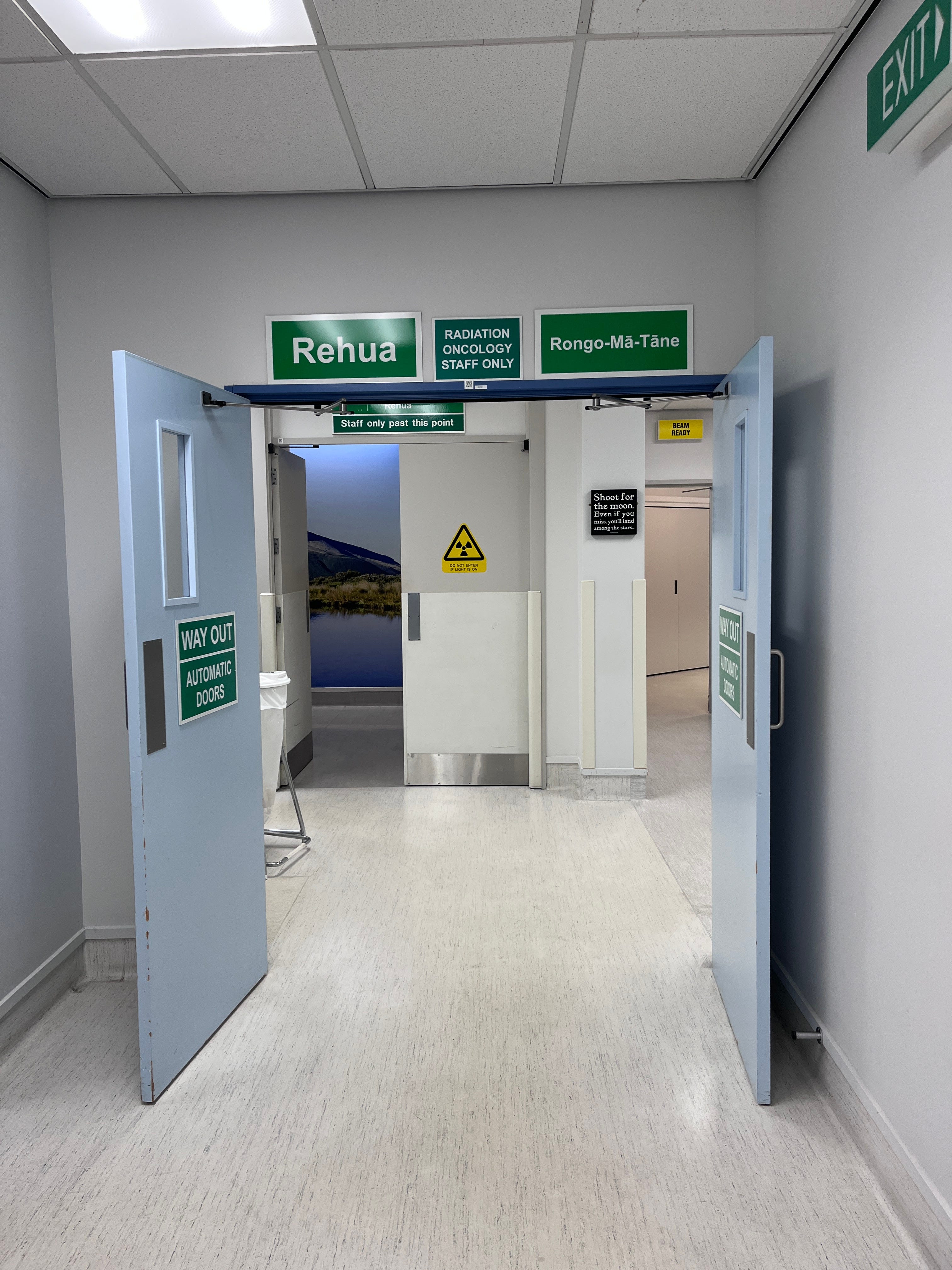I took the video on my last day, and Paul was allowed to come in to take a look at the machine too. He left the room before we started :) I love the ‘Beam on - ionising radiation’ red sign, like something out of a movie!